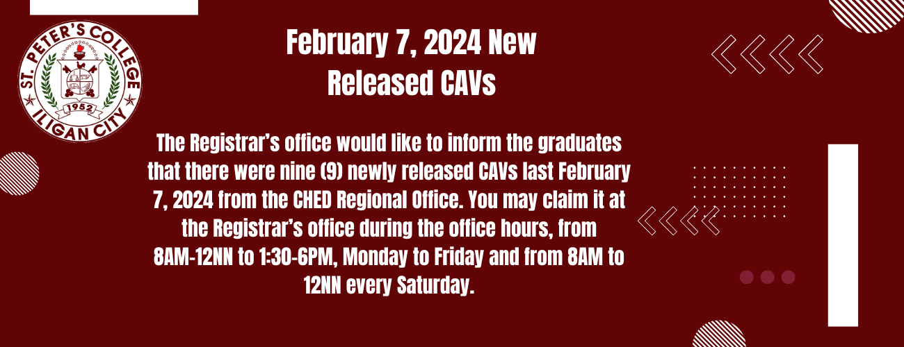 The Registrar’s office would like to inform the graduates that there were nine (9) newly released CAVs last February 7,