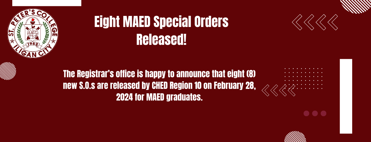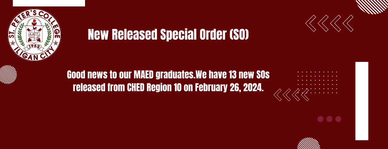 Good news to our MAED graduates.We have 13 new SOs released from CHED Region 10 on February 26, 2024.