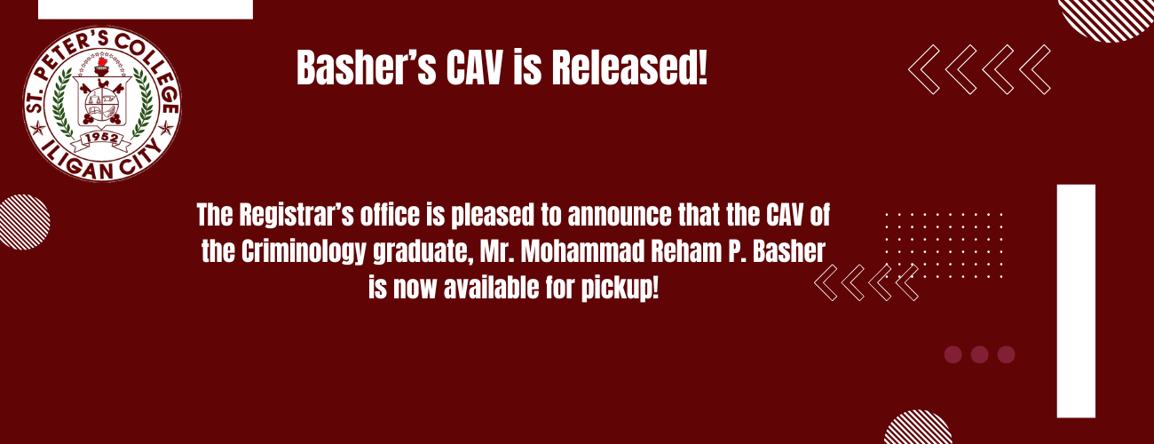 The Registrar’s office is pleased to announce that the CAV of the Criminology graduate, Mr. Mohammad Reham P. Basher is