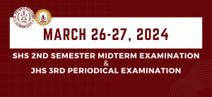 The Basic Education Students will be having their examinations on March 26 and 27, 2024, at their respective classrooms. Students/Parents