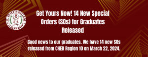 Good news to our graduates. We have 14 new SOs released from CHED Region 10 on March 22, 2024.