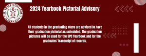 All students in the graduating class are advised to have their graduation pictorial as scheduled. The graduation pictures will be